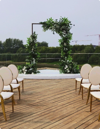 Выбирая вариант конструкции арки или ее альтернативные решения, нужно учесть погодные условия и окружающее пространство. Конструкция и элементы выездной регистрации должны быть устойчивы и сохранить задуманный вид до конца праздника. Я помогу вам подобрать грамотное решение для выездной регистрации, исходя из ваших пожеланий.