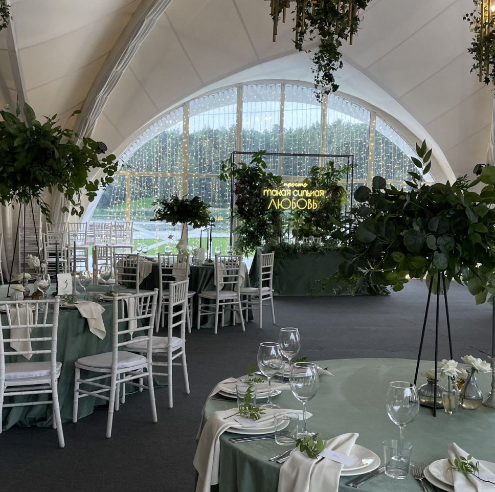 Банкетные залы как правило предоставляют стулья, но они могут вам не подходить под общую концепцию, тогда вам подойдет вариант чехлов на стулья. Если бюджет позволяет можно взять стулья в аренду.