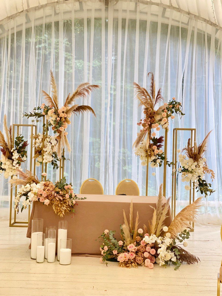 В настоящий момент каждая пара старается уделить свадебному декору особое внимание. И конечно, самое красивое место — это президиум молодых.